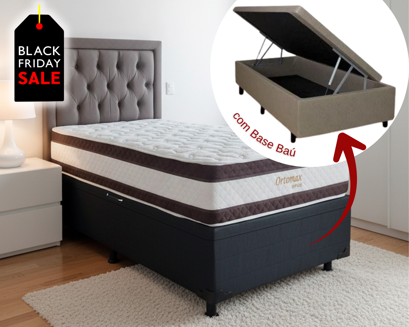 Conjunto Baú Solteiro (Colchão Ortomax D45 Biflex + Base Baú Trad. 46cm)