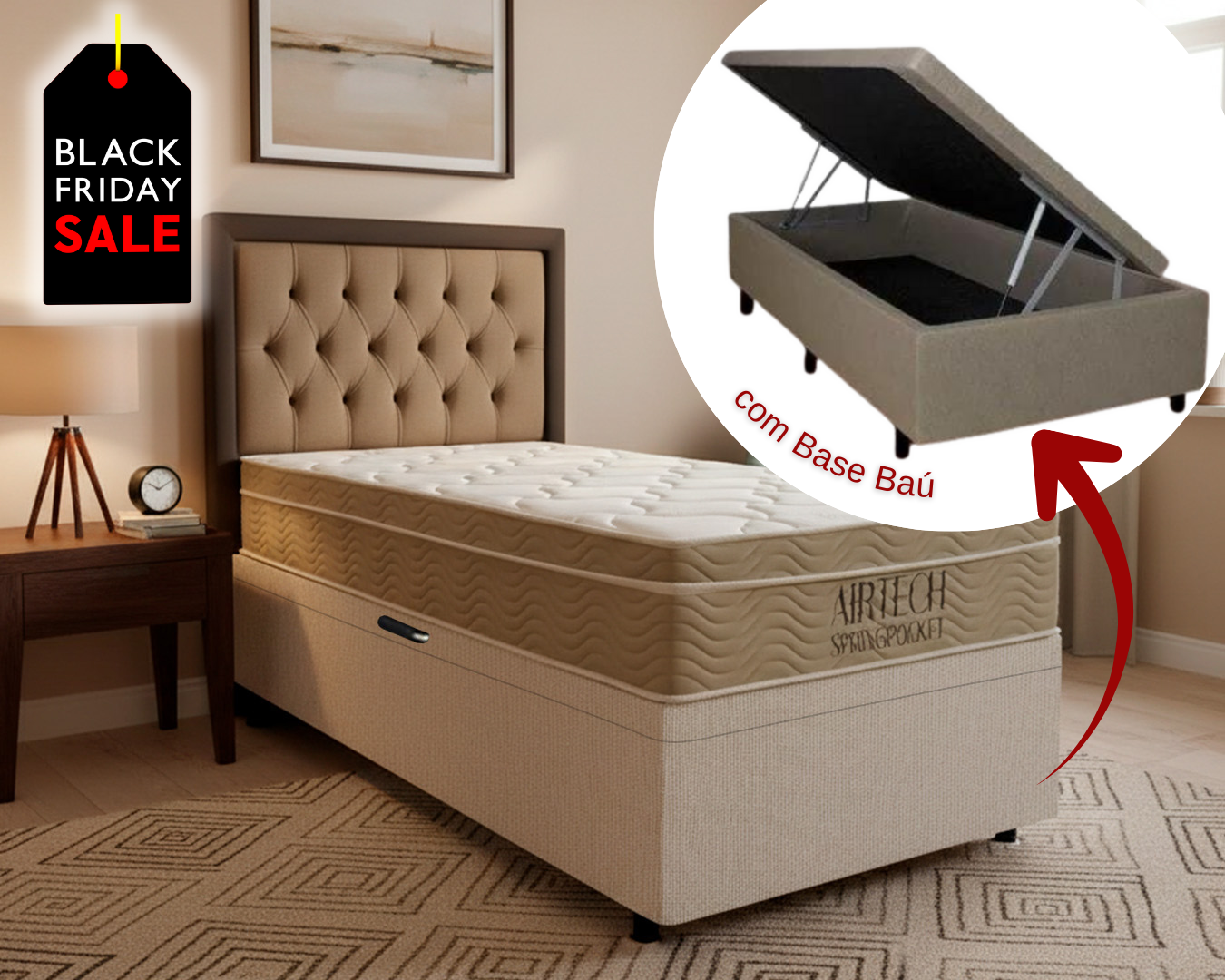 Conjunto Baú Solteirão (Colchão Airtech Springpocket Ortobom + Base Baú Trad. 46cm)